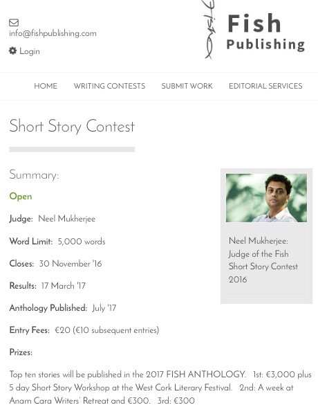 Have you time before the 30th November for a burst of enthusiasm, a glorious mad dash towards the finishing posts of a new short story? Click the screenshot for details of the Fish Short Story Competition. Think quick. Think John O’Donohue, think West Coast of Ireland. Think “I can do it”. And do it!